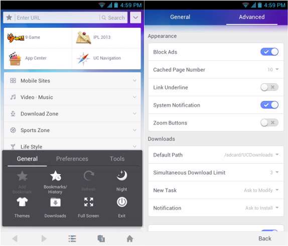مرورگر پرسرعت و قدرتمند موبایل، UC Web Browser 10.0.0