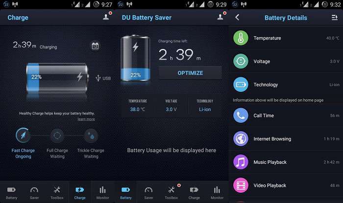 برخی از امکانات و قابلیت های اپلیکیشن DU Battery Saver PRO & Widgets اندروید :